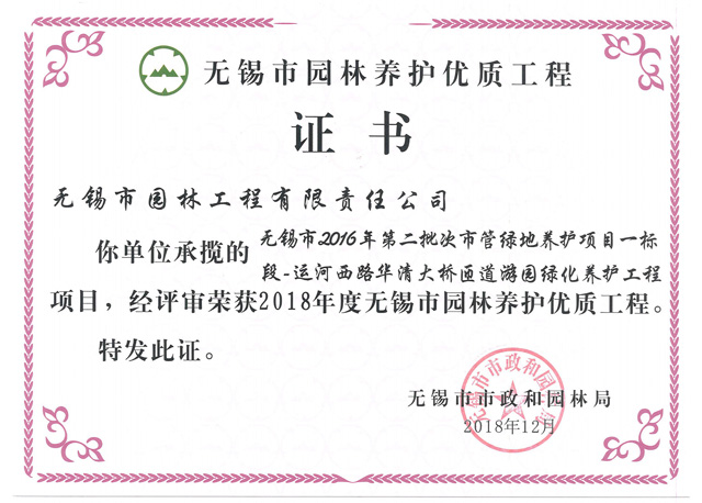 2016揚子杯——無錫地鐵1號線沿線景觀綠化工程三標(biāo)